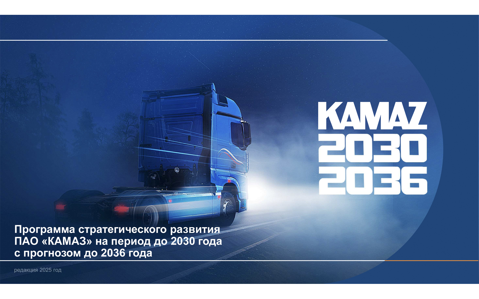 Актуализированная программа стратегического развития ПАО «КАМАЗ» на период до 2030 года с прогнозом до 2036 года (Стратегия «КАМАЗ-2030/2036»), утверждённая Советом директоров компании 12 декабря 2025 года, представлена в публичной версии и опубликована на официальном сайте компании 23 декабря 2025 года.