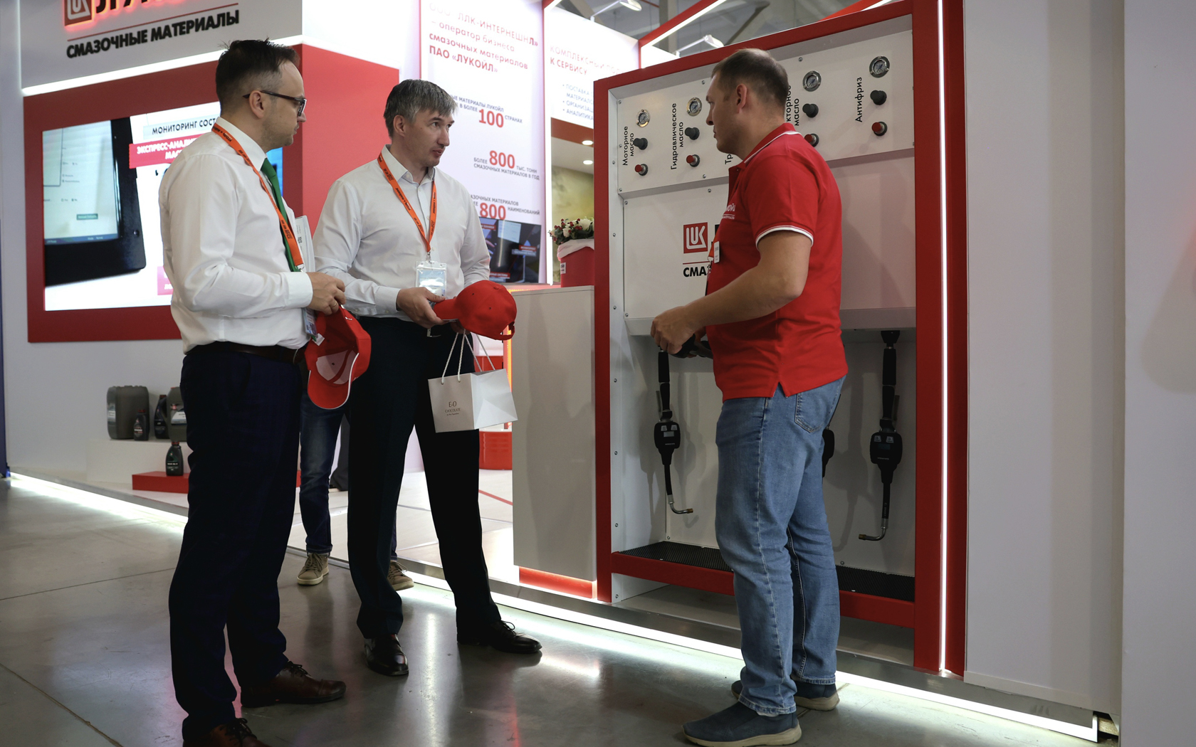 На стенде ЛУКОЙЛ был представлен образец маслораздаточного модуля для пяти видов смазочных материалов и технических жидкостей. Более того, в каждый раздаточный пистолет интегрированы электронные счётчики. Они отслеживают количество выдаваемого масла, а также передают данные в режиме реального времени в центральную систему управления предприятием. Такой подход позволяет контролировать потребление, сокращать нецелевые расходы, а также гарантировать заливку соответствующих сезону и узлу применения масел.
