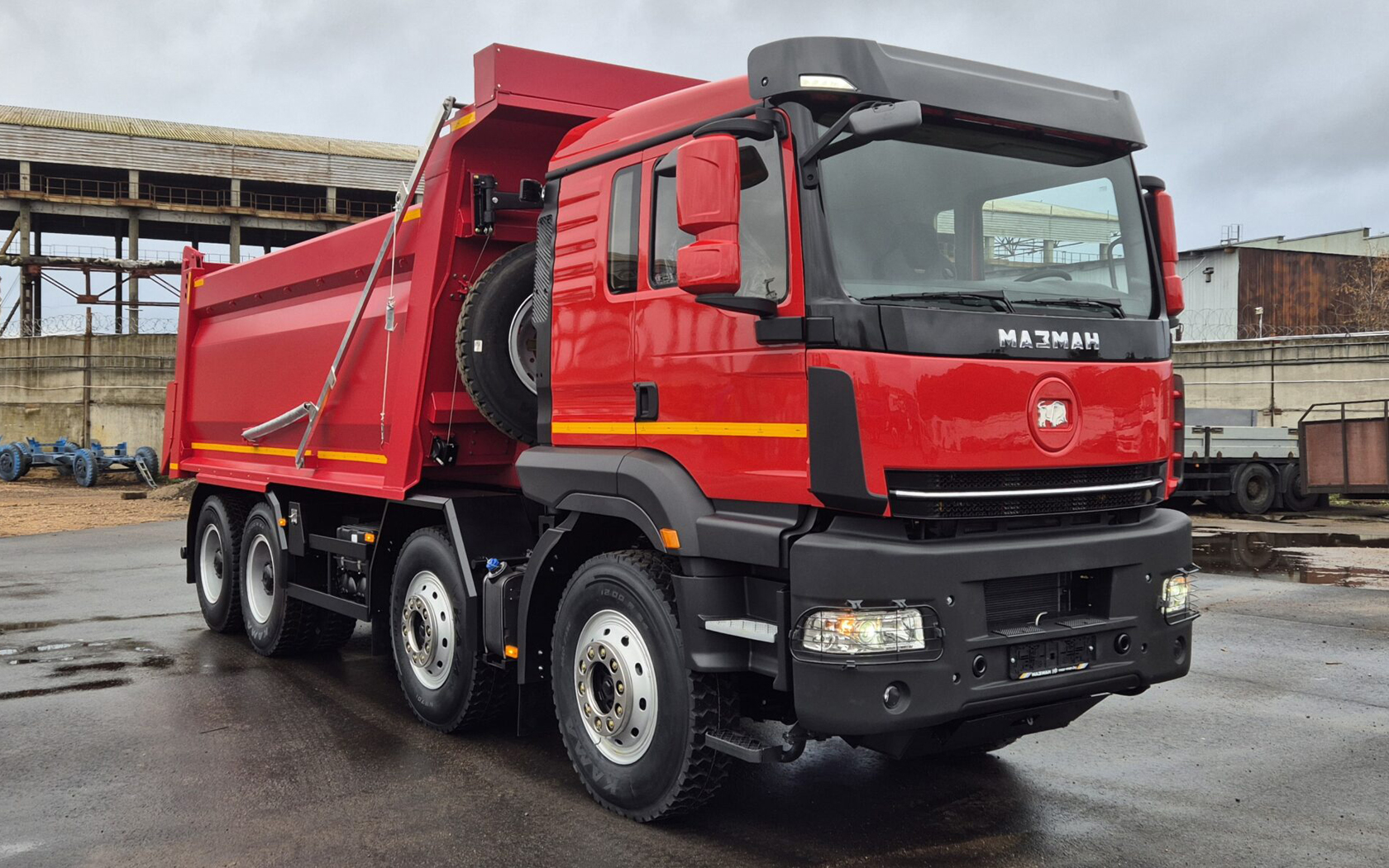 СП ЗАО «МАЗ-МАН» (г. Минск, республика Беларусь) разработало новое поколение самосвалов с колесной формулой 8х4. Это первая модель с такой колесной формулой, ведь раньше, судя по каталогу на официальном сайте по состоянию на 31.10.2025, предприятие в основном выпускало варианты 6x4, 6x6 и 8x8.